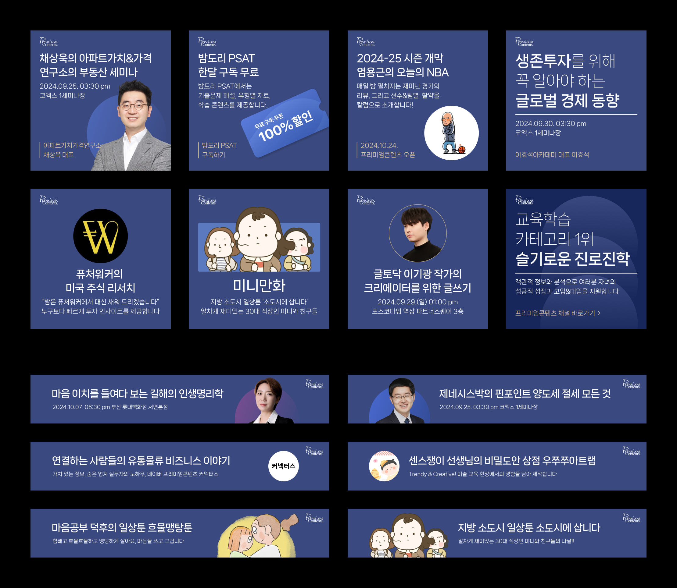 * 프리미엄콘텐츠의 브랜드 컬러를 활용한 A타입과 심플 스타일의 B타입 중에서 선택할 수 있습니다.